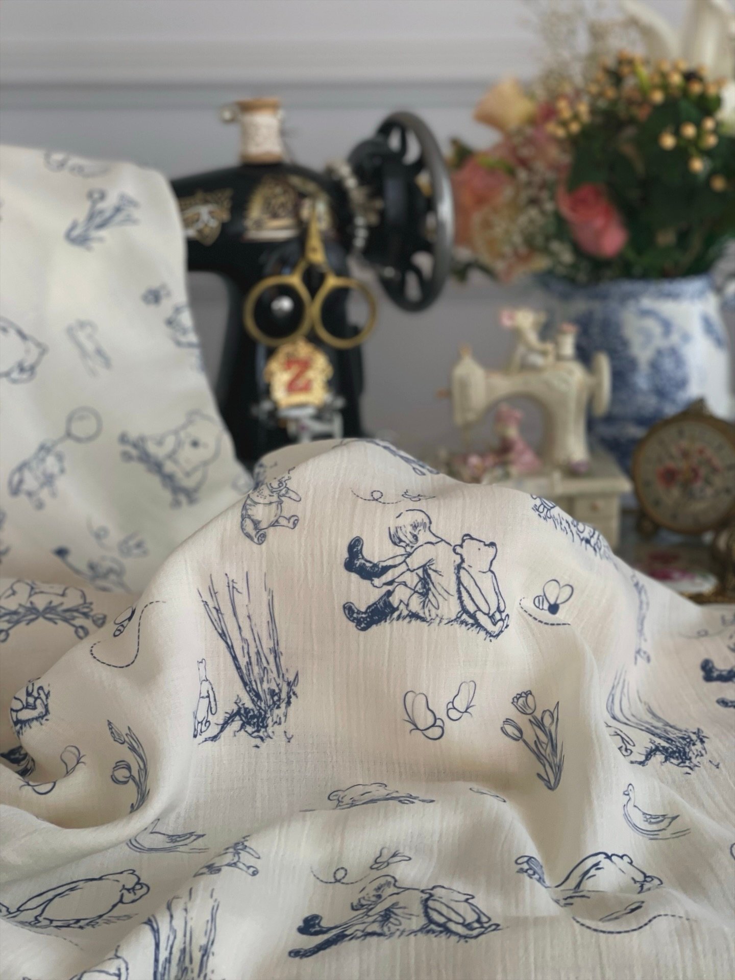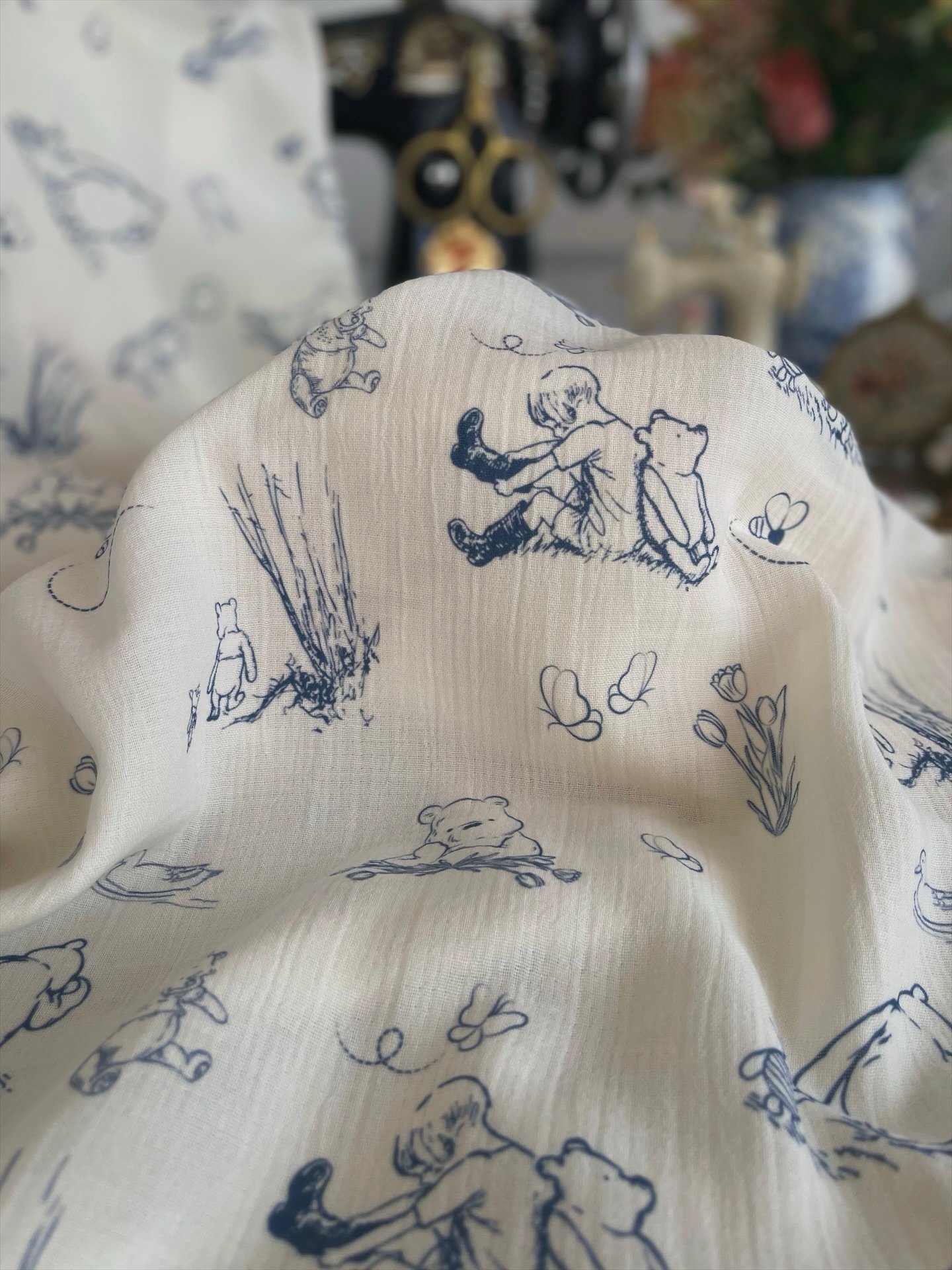 BLUE TOİLE DE JOUY WİNNİE THE POOH MÜSLİN