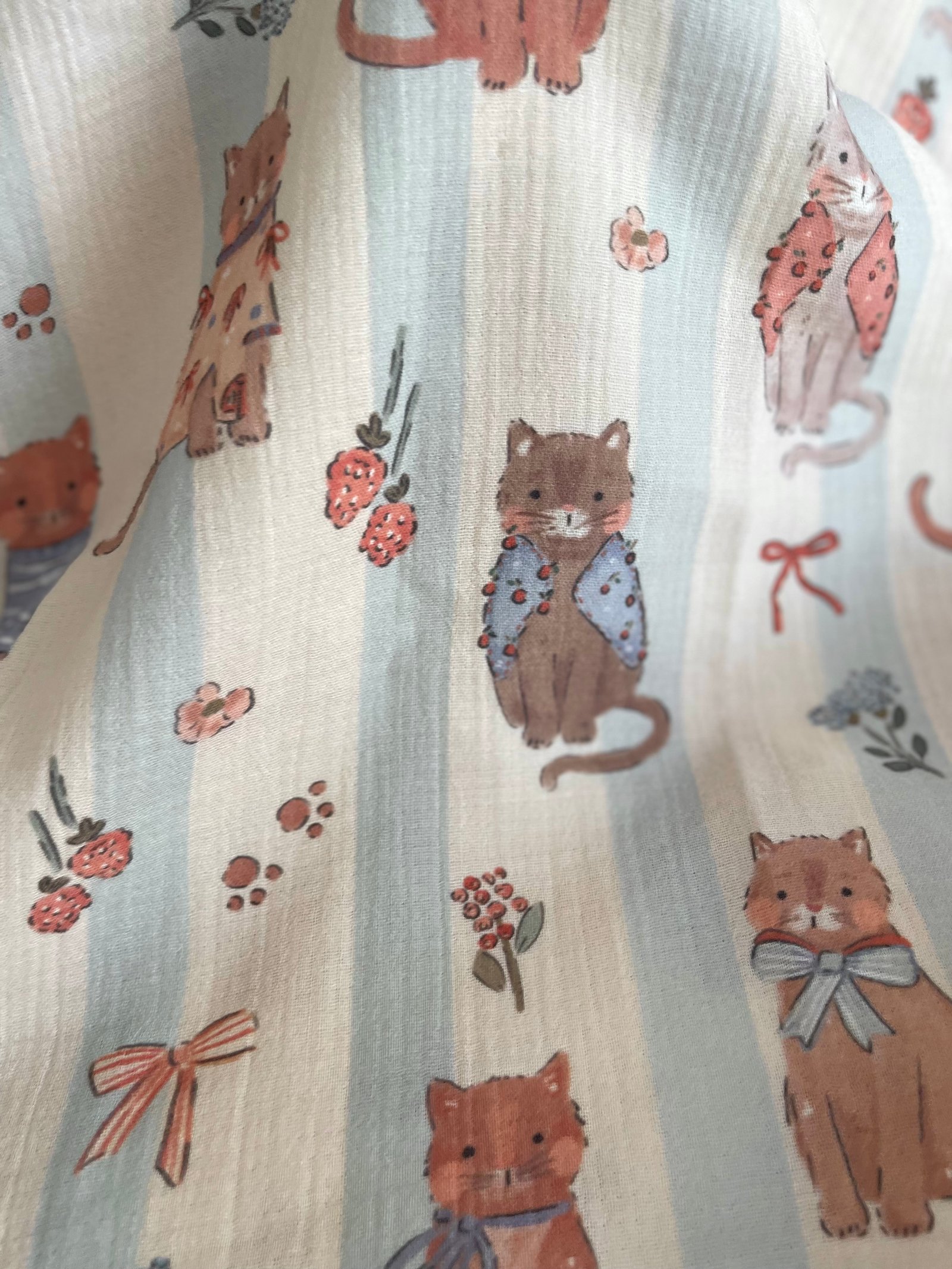 ÇİZGİLİ VİNTAGE CATS KULLANIMA HAZIR MÜSLİN ÖRTÜ