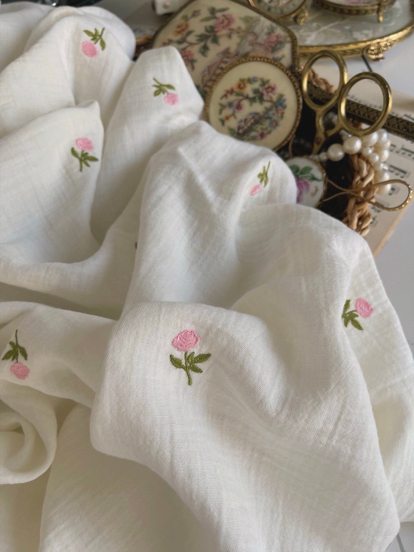 GÜL NAKIŞLI MÜSLİN ÖRTÜ