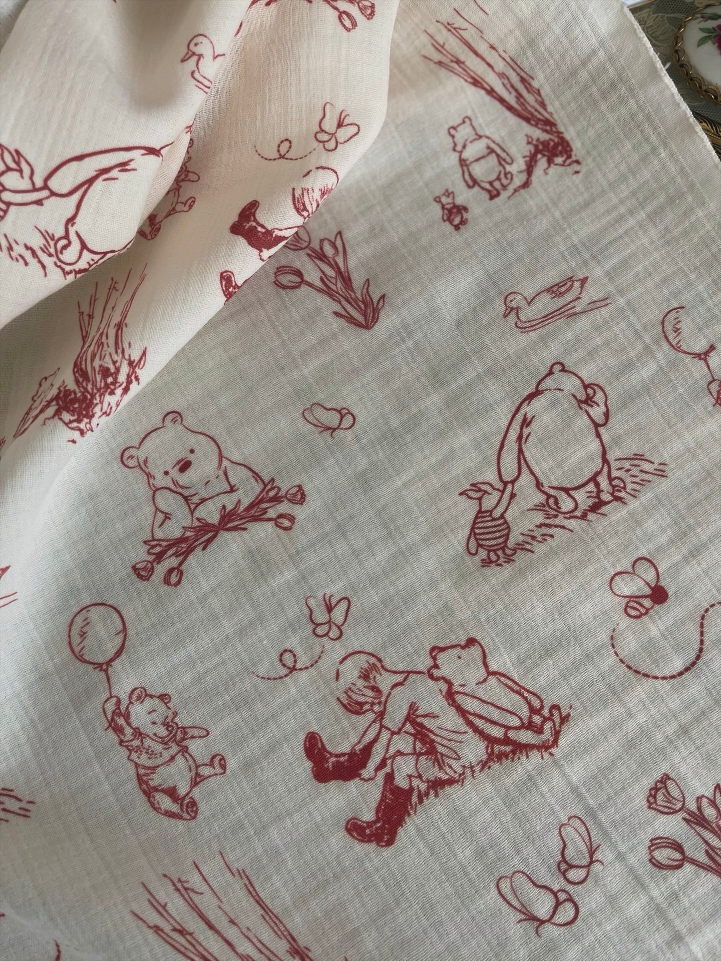RED TOİLE DE JOUY WİNNİE THE POOH MÜSLİN ÖRTÜ