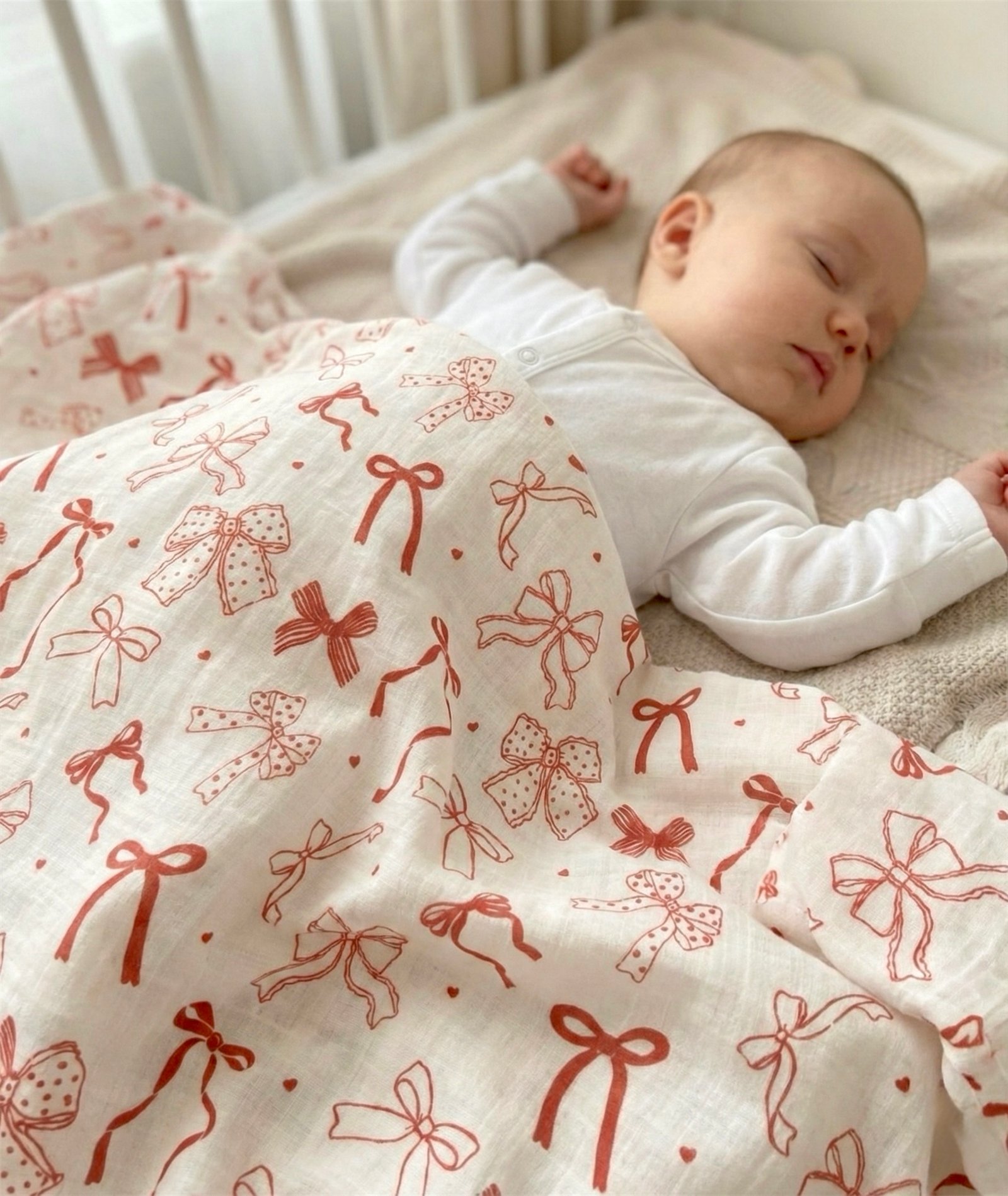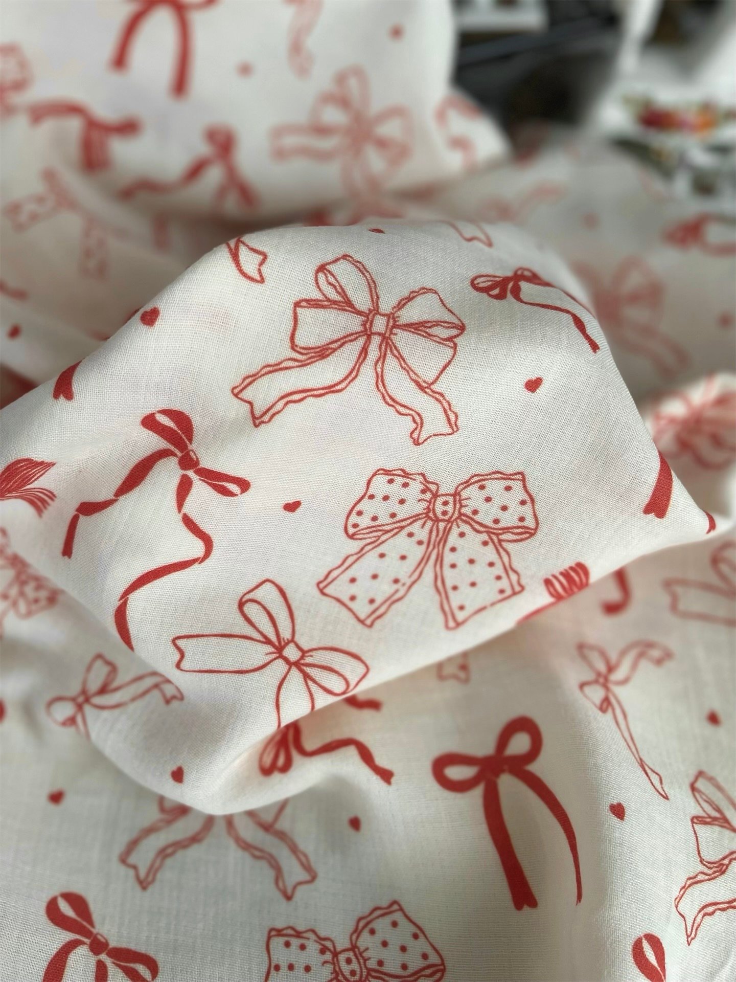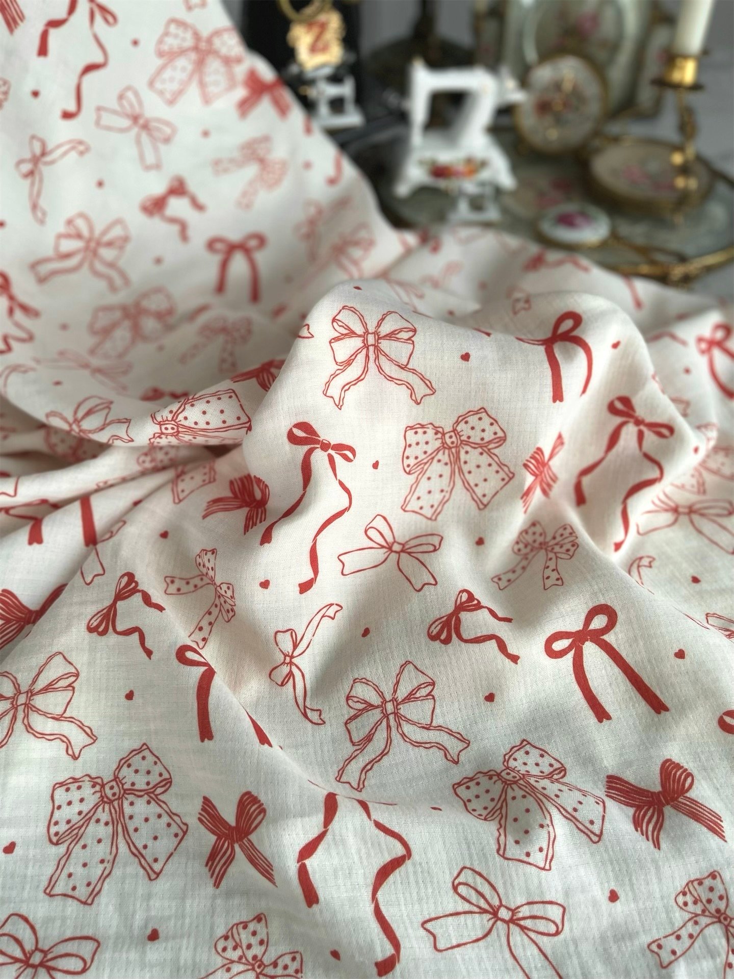 VİNTAGE RED RİBBON MÜSLİN ÖRTÜ ❗️ÖN SİPARİŞ TESLİM SÜRESİ 3 HAFTADIR❗️